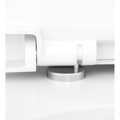 Унитаз комплектуется быстросъемным сиденьем из дюропласта. Этот материал устойчив к появлению царапин и обеспечивает долговечность сиденья. Механизм плавного закрывания сиденья рассчитан на 100 000 закрываний, что гарантирует его долговечность и надежность. Быстрое снятие сиденья облегчает уход за ним и керамикой.