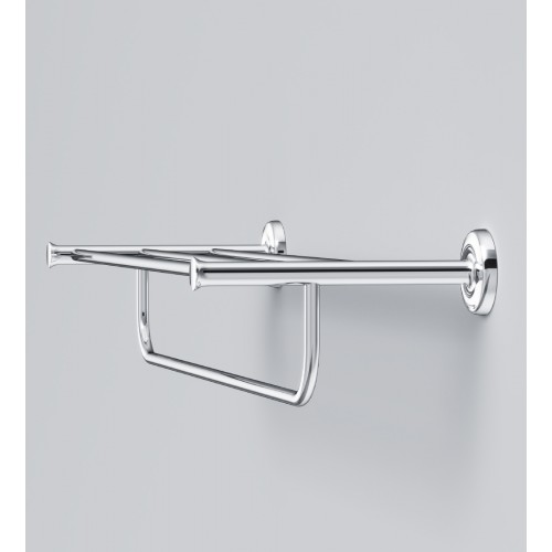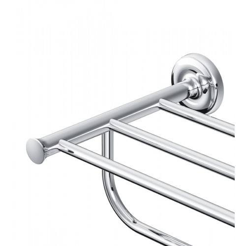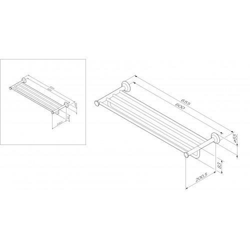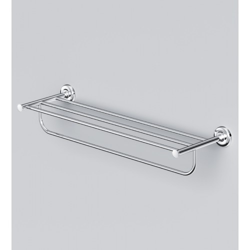 Полка изготовлена из металла с хромированным покрытием, что придает ей элегантный и современный вид. Она имеет размеры 655x200,5x138 мм, что позволяет разместить на ней несколько полотенец одновременно. Монтаж полки осуществляется подвесным способом, что обеспечивает удобство использования и экономию пространства.