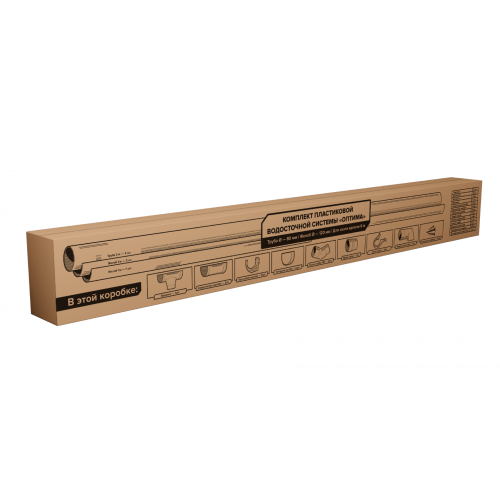 Комплект включает в себя все необходимые элементы для установки: желоб, трубы, отводы, соединители и крепежные элементы. Все детали изготовлены из высококачественного материала, обладающего прочностью и долговечностью.