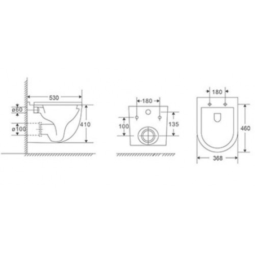 Размеры унитаза составляют 530x368x410 мм, что делает его компактным и удобным для установки в любом помещении.