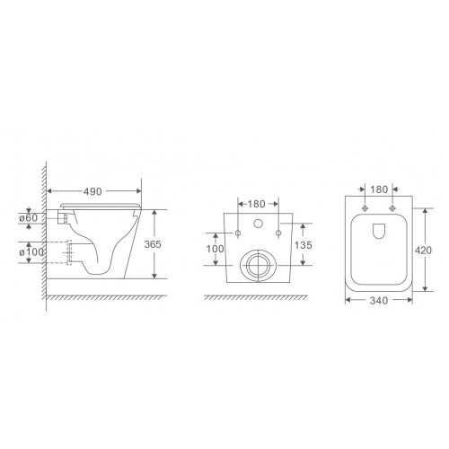 Унитаз подвесной Glossy Drish Tornado имеет компактные размеры: ширина 340 мм, глубина 490 мм, высота 365 мм. Это позволяет установить его даже в небольших помещениях, сохраняя при этом функциональность и комфорт использования.