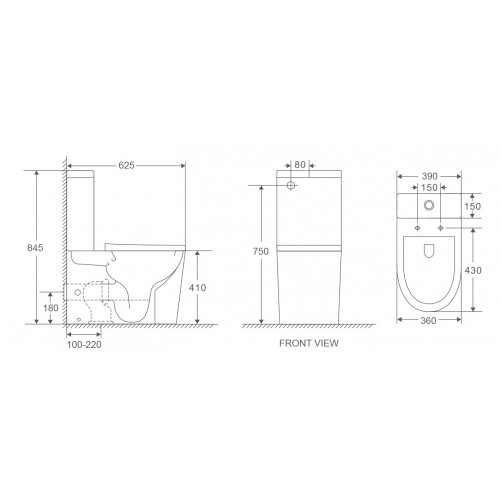 Ширина унитаза составляет 390 мм, глубина - 625 мм, высота - 845 мм. Это компактные размеры, которые позволяют установить унитаз даже в небольших ванных комнатах.
