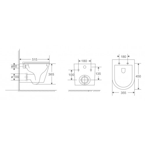 Унитаз имеет следующие размеры: ширина - 355 мм, глубина - 515 мм, высота - 365 мм. Это позволяет установить его даже в небольших ванных комнатах, не занимая много места.
