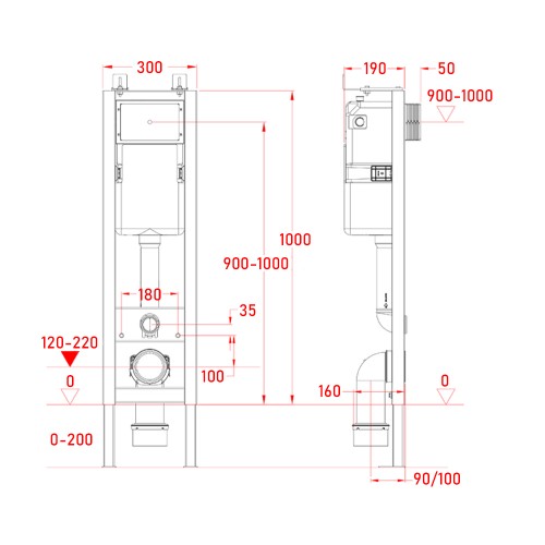 Инсталляция Glossy Small H301A 300*190*1000 (без клавиши)