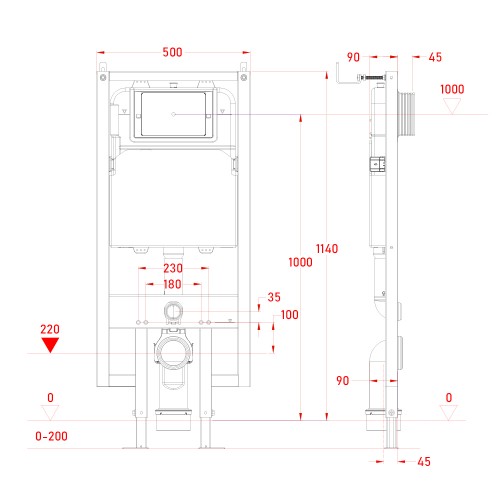Инсталляция Glossy MAX Slim H504A 500*100*1140 (без клавиши)