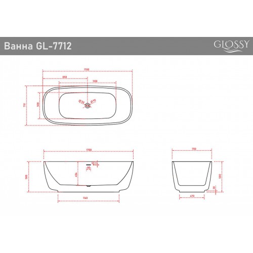 Акриловая ванна Glossy GL-7712 овальная 170х75