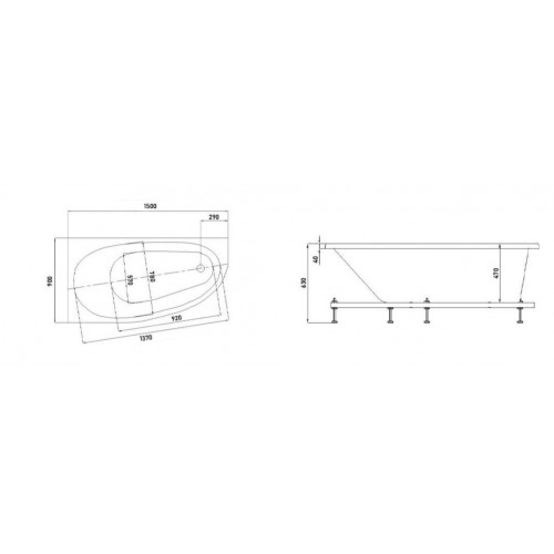 Акриловая ванна Glossy Sky асимметричная 150х90 (левая)
