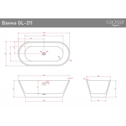 Акриловая ванна Glossy GL-211 овальная 170х80