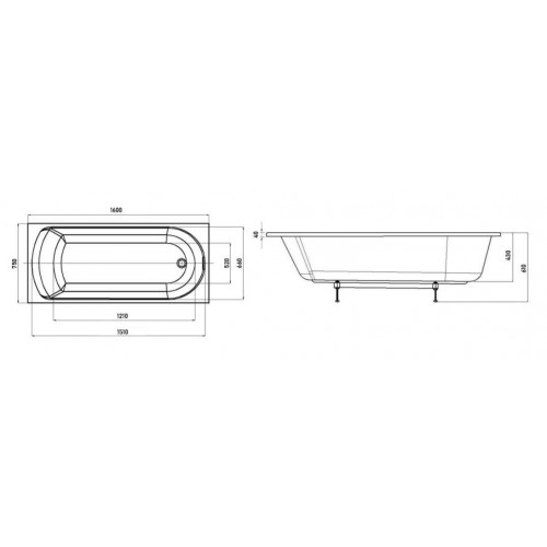 Акриловая ванна Glossy Slide прямоугольная 160х75