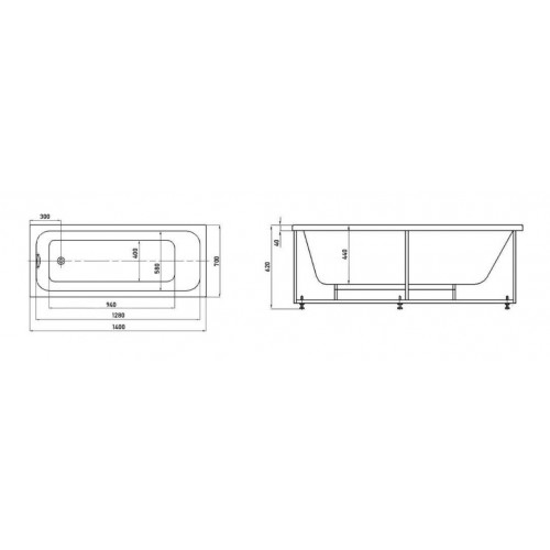 Акриловая ванна Glossy Drish прямоугольная 140х70