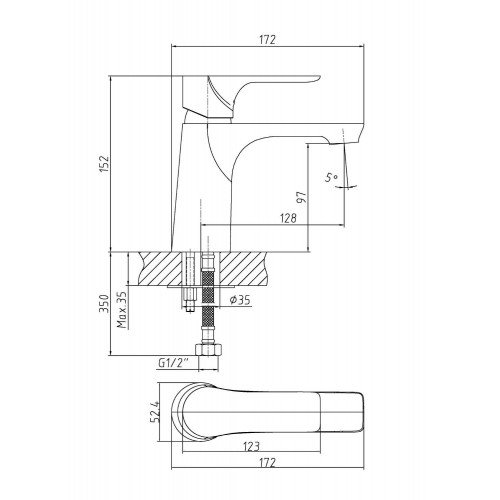 Комплектация смеситель, набор креплений, гибкая подводка, инструкция