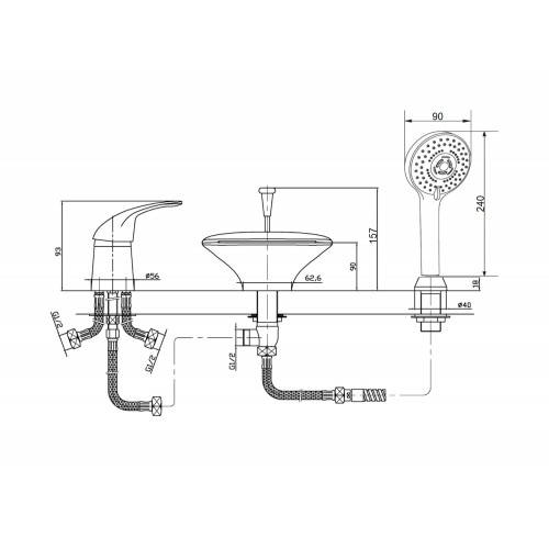 Смеситель для ванны/душа Orange Iris M41-333cr на борт ванны
