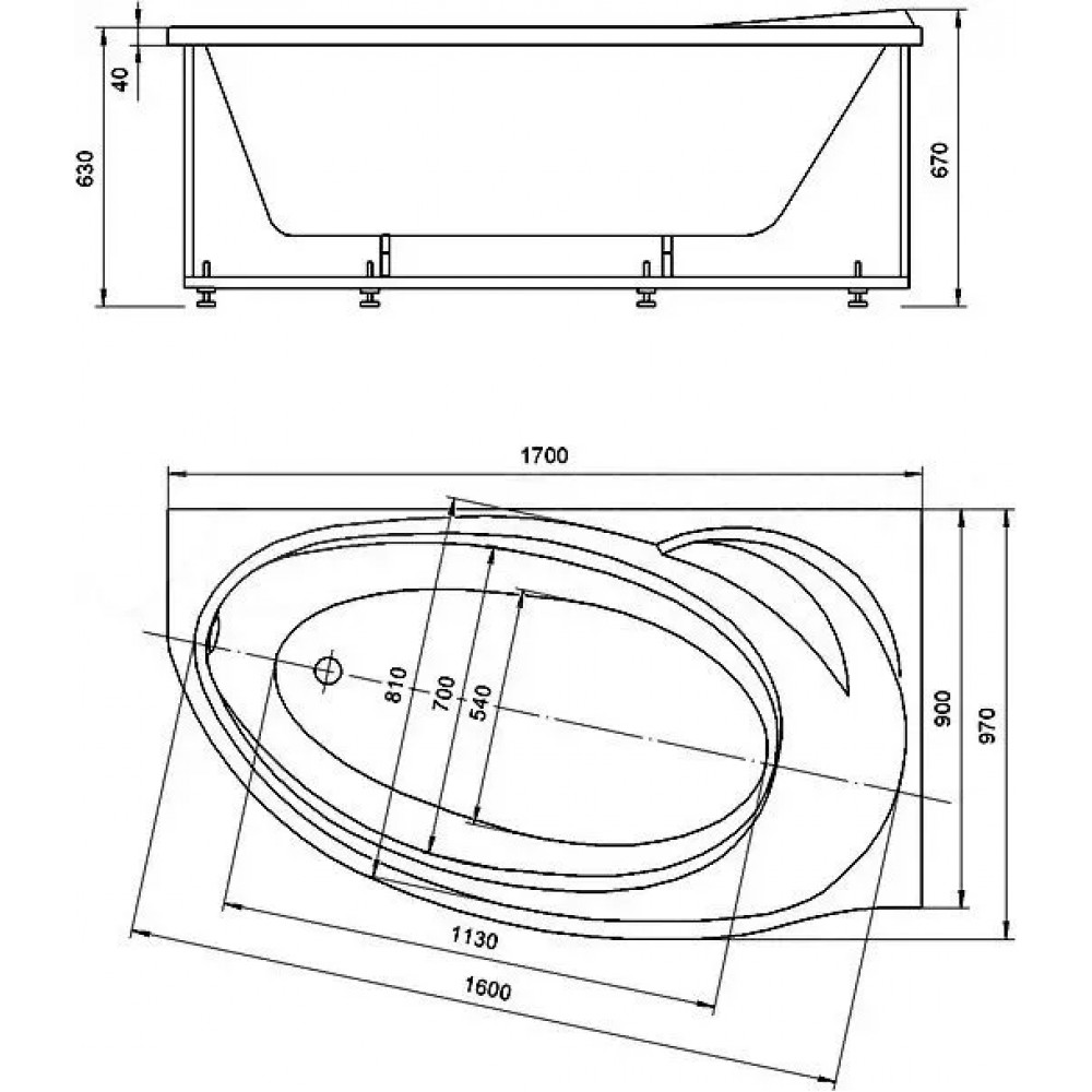 Ванна акриловая Glossy Serenada асимметричная 170х97 (правая)