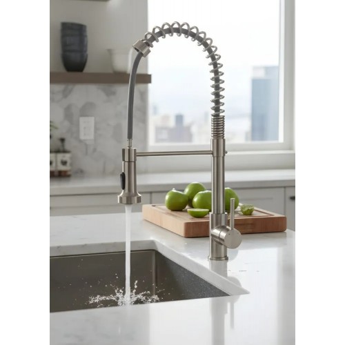 Смеситель Glossy Kitchen GL 05 025 NY для кухни, гибкий с держателем, никель