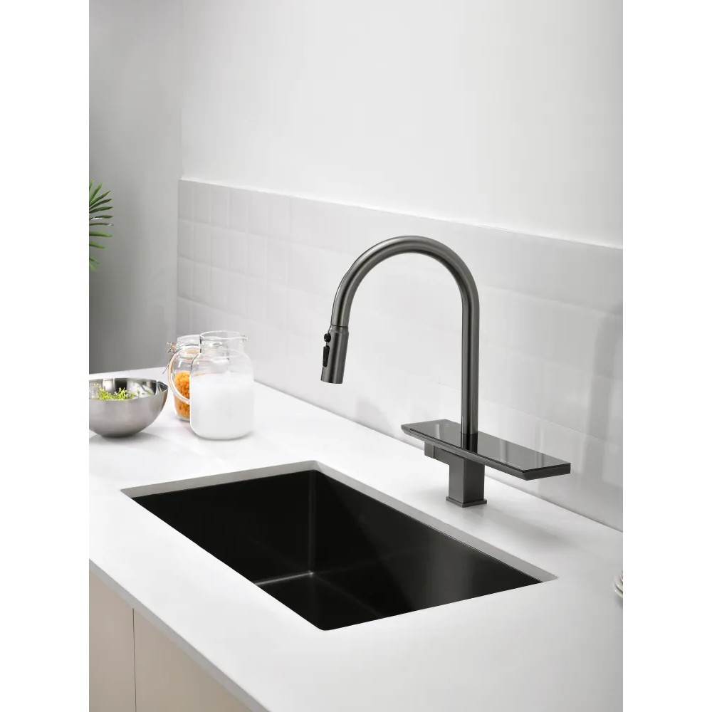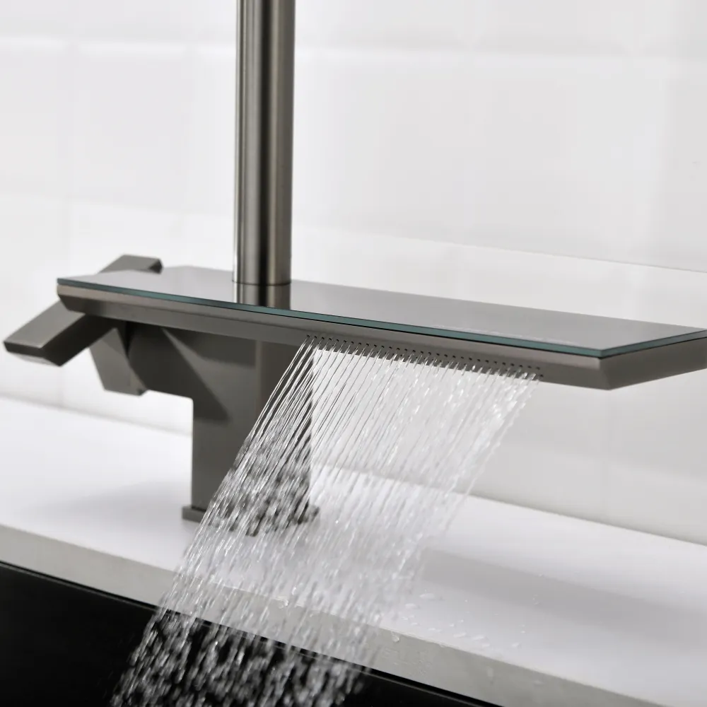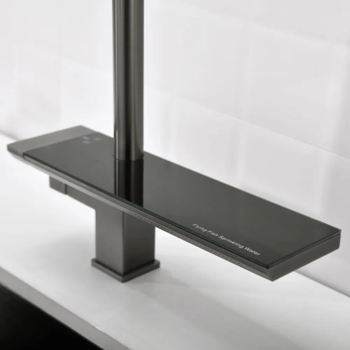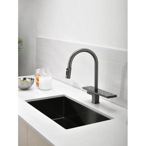 Смеситель Glossy Kitchen GL-20184-Q для кухни с полочкой, оружейная сталь