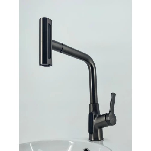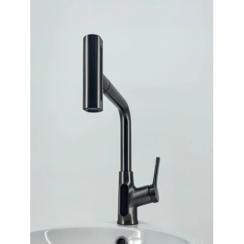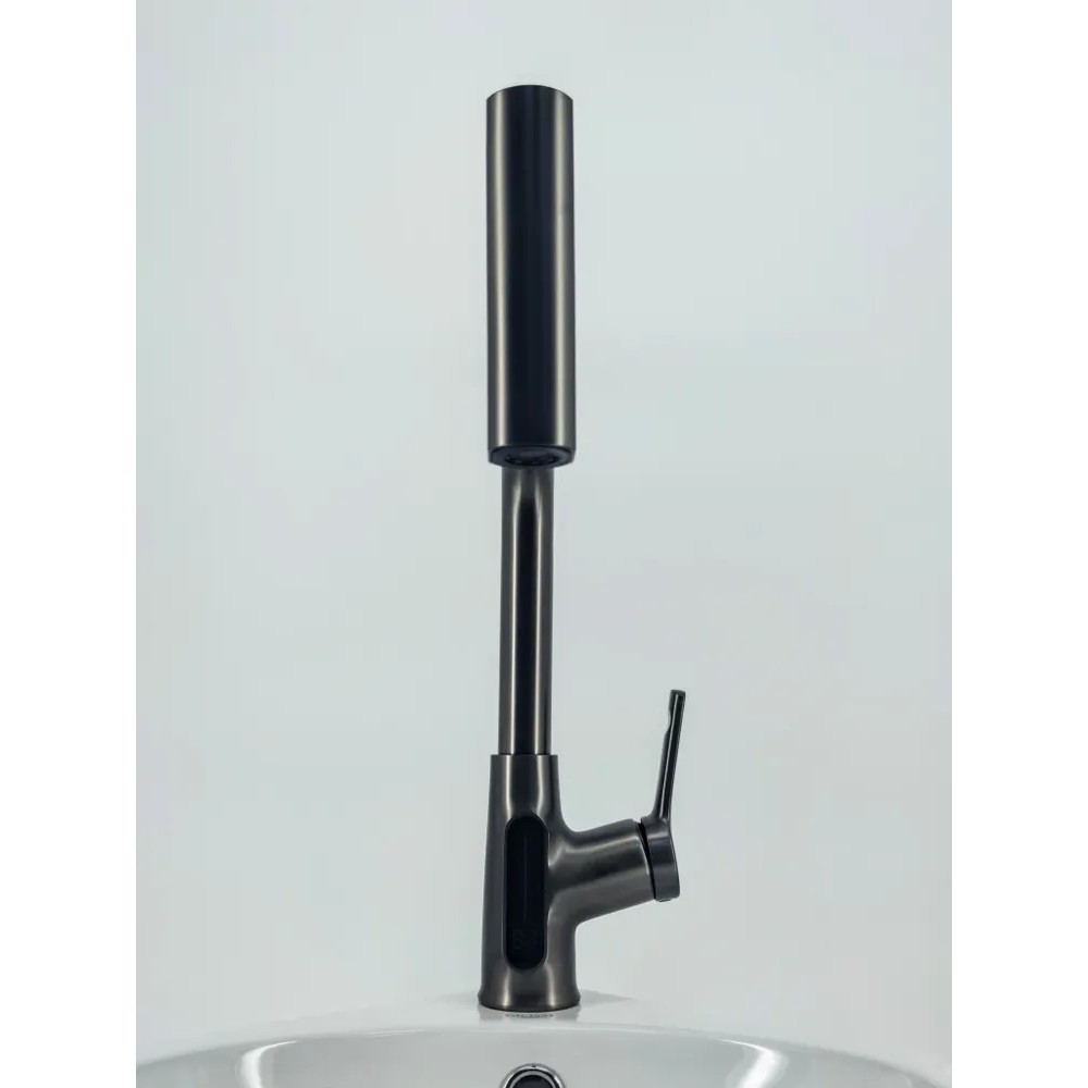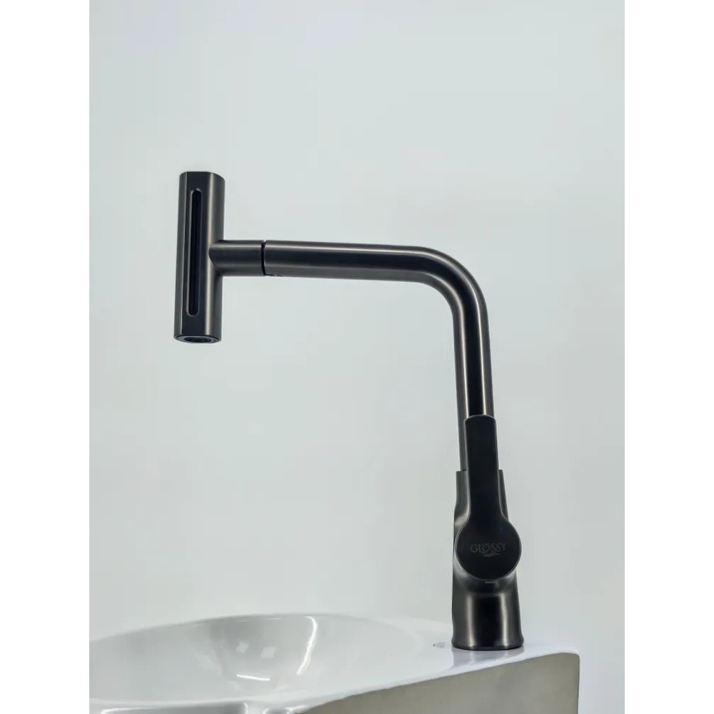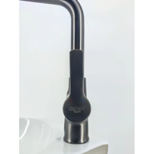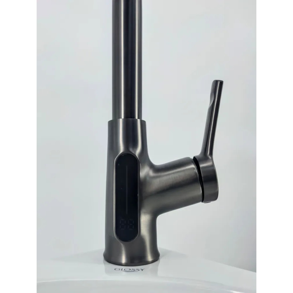 Смеситель Glossy Kitchen GL-25298-Q для кухни, 4 режима, дисплей, высокий, оружейная сталь