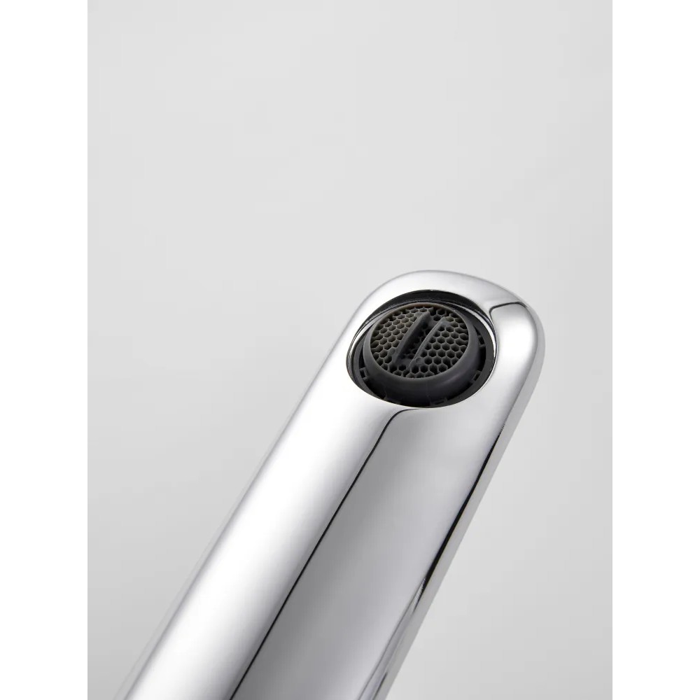 Изящный и лаконичный внешний вид придаст вашему интерьеру особую привлекательность, а прочное исполнение сохранит первозданный вид долгие годы. Смеситель изготовлен из качественного материала с покрытием хром, которое защитит устройство от воздействия агрессивных сред и обеспечит длительный срок службы.
