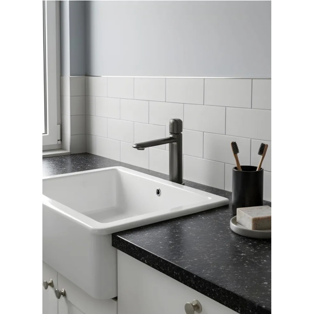 Стильный дизайн. Оттенок выглядит солидно и современно, не выходит из моды и сочетается с разными материалами (керамика, стекло, камень).
