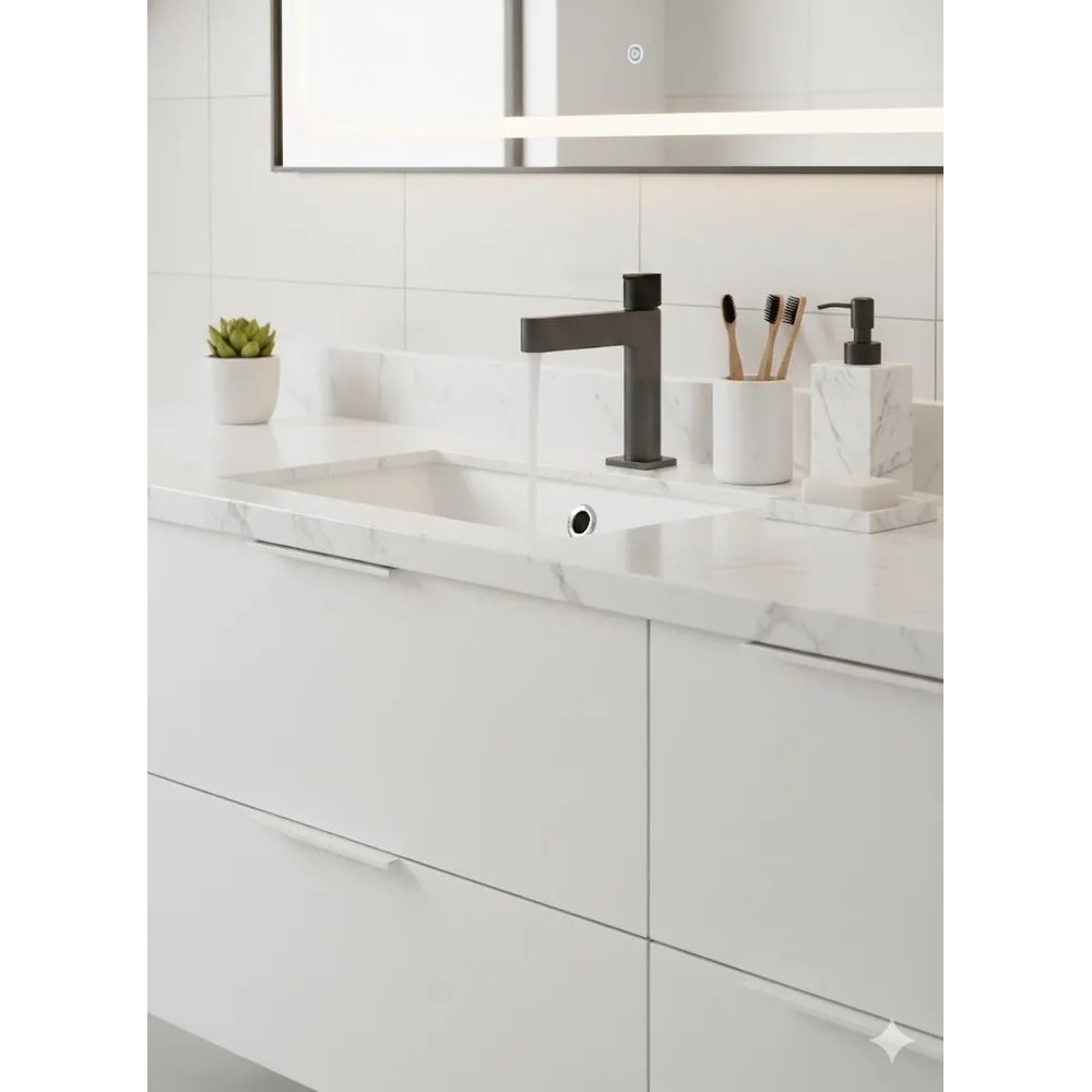 Компактный и стильный дизайн. Узкая, изящная форма смесителя экономит пространство и подчёркивает современный стиль ванной комнаты.