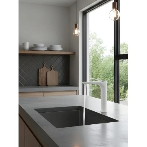 Эргономичный дизайн. Плавные линии и компактная форма гармонично вписываются в любое пространство, не занимая много места над раковиной.